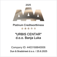 Director of Urbis Centre received special recognition - Golden Creditworthiness diploma at the business meeting organized by Bisnode Rating Agency and Chamber of Commerce and industry of Republic of Srpska in Banjaluka, 19th July 2018. By receiving this global standard of quality confirmation, Urbis has ranked among the companies with golden excellence, which includes only seven percent of the companies from the total number of excellent credit rating companies in the Republic of Srpska. Financially excellent companies in the Republic of Srpska account for only 21% of its total number of companies, but they make up 62% of total revenues and 70% of the total net profit of this entity and employ 55% of the total number of employees in RS.